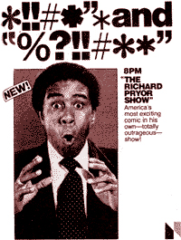 ●● インフォ リチャード・プライヤーがNBCでスペシャル番組を成功させて、鳴り物入りでプライヤーにバラエティ番組を作らせたが、過激過ぎでたったの4エピソードで終了してしまった番組。 |